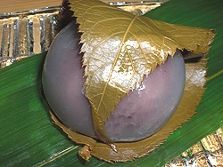 ![]() ▲しそ餅(1ヶ115円) もち米の中に甘さ控えめな粒あんを包んでいます。塩漬けの赤しその葉で包んでいるのがアクセント。くせになる味。 |